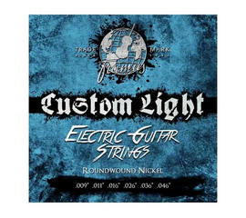 Струны для электрогитары, натяжение Custom Light, никелированная сталь, шестигранный сердечник, круглая обмотка, толщина .009", .011", .016", .026", .036", .046"