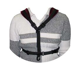 Надевается на плечи, жёсткие вставки - сгибаются по плечам. Мягкие бархатные накладки, фурнитура. - Duraflex