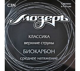 C3CN Комплект струн для классической гитары, биокарбон/посеребренная медь, среднее натяжение, Мозеръ Биокарбон — материал растительного происхождения, чуть более мягкий чем обычный карбон. Верхние струны из этого материала отличаются звонким, ярким и динамичным звучанием. Басовые струны...