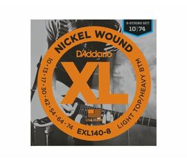 Струны для 8-струнной электрогитары D'addario EXL140-8; Серия: XL Nickel; Комплект: 8-String Light - Heavy; Обмотка: никелированная сталь; Сердцевина: стальная, шестигранная; Натяжение: верхние-легкое, нижние-жесткое; Калибр: .010, .013 .017, .030, .042, .054, .064, .074;
