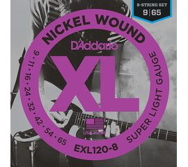 D'Addario EXL120-8, EXL120-8 Nickel Wound Комплект струн для 8-струнной электрогитары, Super Light,