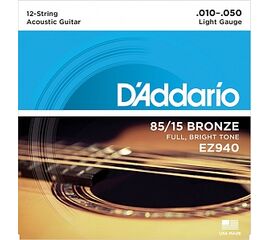 D'Addario EZ940 AMERICAN BRONZE 85/15 Струны для 12-струнной акустической гитары Light 10-50