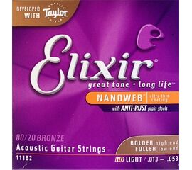 11182 NANOWEB Комплект струн для акустической гитары, HD Light, бронза 80/20, 13-53, Elixir Оплетка из бронзы 80/20 с покрытием Nanoweb. Эти струны обеспечивают яркое, живое звучание и ощущения как от традиционных струн с оплеткой из сплава бронзы 80/20. Ультратонкое покрытие NANOWEB: -...
