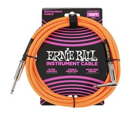 ERNIE BALL 6079 - кабель инструментальный, оплетёный, 3,05 м, прямой/угловой джеки, оранжевый неон