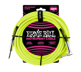 ERNIE BALL 6080 - кабель инструментальный, оплетёный, 3,05 м, прямой/угловой джеки, желтый неон