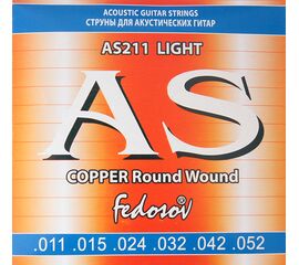 AS211 Copper Round Wound Комплект струн для акустической гитары, медь, 11-52, Fedosov Шестигранная основа струн. Оплетка: медь. Толщины струн: .011, .052
