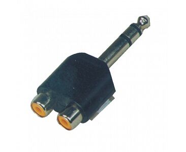 Переходник 2 х RCA (тюльпан) female — 6,3мм стерео (1/4" TRS) male.