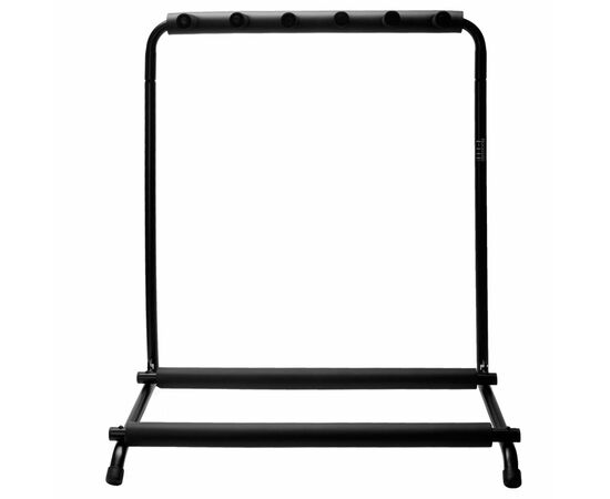 Rockdale 34075 - универсальная напольная стойка для пяти гитар с разделителем грифов. Эта универсальная стойка обычно используется для размещения пяти электрогитар или бас-гитар на сцене, но также может быть использована в студии, на репетиционной базе или дома. Стойка очень надежная за счет цельнометаллической конструкции. Ножки оснащены специальными противоскользящими резиновыми наконечниками для устойчивости. Для предотвращения возникновения царапин или потертостей в местах соприкосновения деталей стойки с инструментами предусмотрены мягкие накладки, защищающие инструменты от повреждений. Модель представлена в черном цвете.