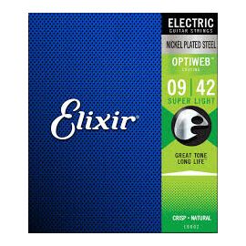 Elixir19002 Optiweb Комплект струн для электрогитары, никелированная сталь, Super light 9-42, Elixir