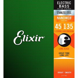 Elixir 14782 NANOWEB Комплект струн для 5-струнной бас-гитары, нерж.сталь, Light/Medium, 45-135,