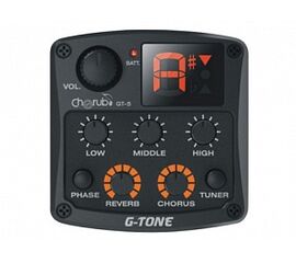 GT-2 Гитарный эквалайзер цифровой 3-полосный с тюнером и фэйзер эффектом, Cherub 3-х полосный эквалайзер с хроматическим тюнером и фэйзер эффектом. Очень просто устанавливается на гитару, видимые размеры составляют всего 52х48х4мм. Оснащен функцией определения уровня заряда батареи....