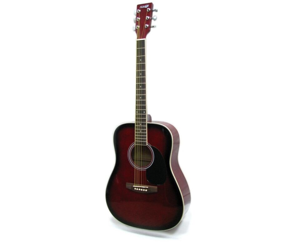 LF-4111-R Акустическая 6-струнная гитара 41". Верхняя дека - ламинат ели, задняя дека и обечайки - ламинат липы, гриф - катальпа, накладка грифа - палисандр, бридж - палисандр, колковая механика - хромированная, окантовка - пятислойный пластик, цвет - красный. HOMAGE