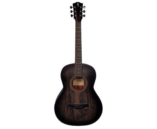 ROCKDALE Folk Novel F1BK Акустическая гитара. Форма корпуса Folk. Цвет полупрозрачный черный. Матовое покрытие. Верхняя дека из агатиса. Нижняя дека и обечайка из сапеле. Гриф из красного дерева. Анкерный стержень. Накладка грифа из древесно-полимерного композита. Маленький зазор между струнами и ладами. Надежная фиксация струнодержателя. Закрытые колки. Контроль качества производства.