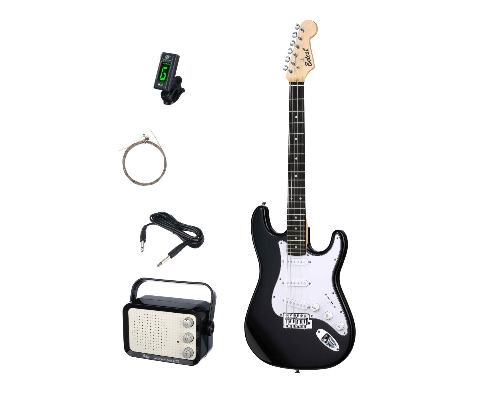 Belcat BST-KIT-BK Электрогитара с комбоусилителем и аксессуарами, черная