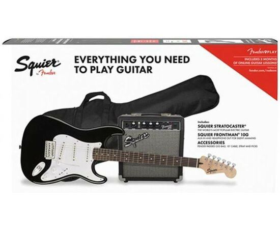 Электрогитара Squier Stratocaster Laurel Fingerbiard Black в комплекте с комбо-усилителем Frontman , чехлом, кабелем, ремнем и медиаторами (037-1823-606)