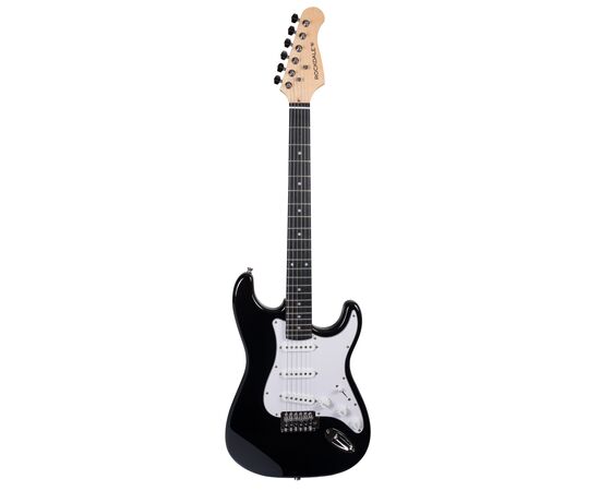 ROCKDALE Stars SSS Black электрогитара, цвет черный. Корпус - тополь, гриф - клён, накладка грифа - древесно-полимерный композит, лады - 22 Jumbo, мензура 25,5`, звукосниматели SSS (керамические магниты), темброблок - 1 громкость, 2 тона, 5-ти позиционный переключатель, бридж тремоло, фурнитура черного цвета, рекомендованный диаметр струн 10/46. Контроль качества производства.