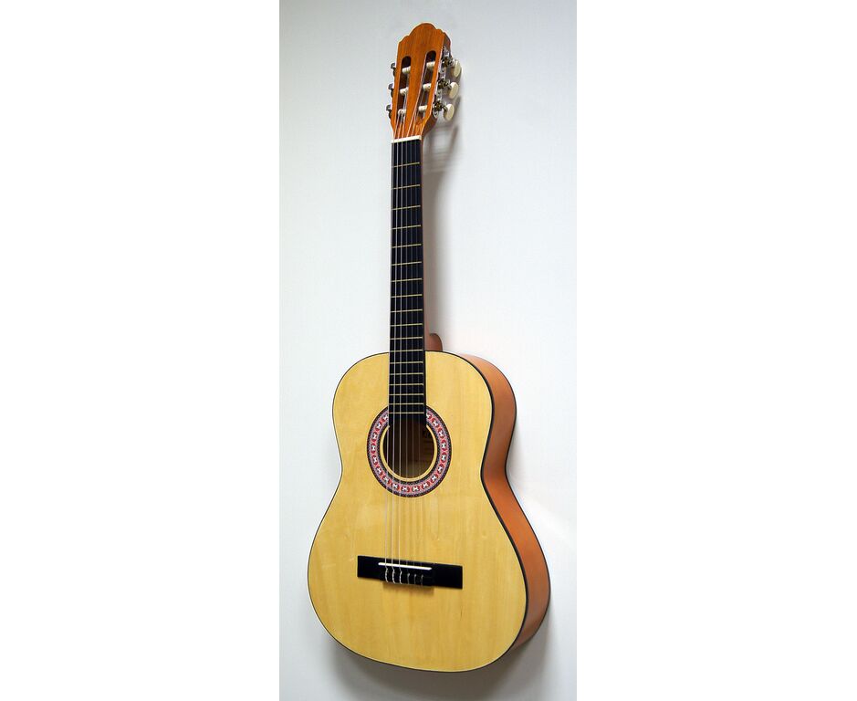 LC-3400 Классическая 6-струнная гитара 1/2 34". Верхняя дека - ламинат ели, задняя дека и обечайки - липа, гриф- клен, накладка грифа - фанера, бридж - клен, колковая механика - хромированная, окантовка - 5-слойная, цвет - натуральный. HOMAGE