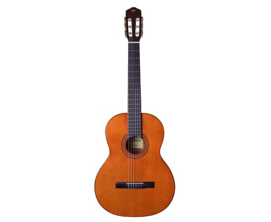 ROCKDALE Classic C7 классическая гитара. Размер 4/4. Цвет натуральный. Глянцевое покрытие. Верхняя дека из массива ели. Нижняя дека и обечайка из сапеле. Гриф из махагони. Анкерный стержень. Накладка на гриф и бридж из палисандра. Нейлоновые струны.