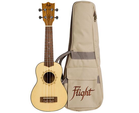 FLIGHT DUS320 SP/ZEB укулеле, сопрано, цвет натурал, верхняя дека - ель, корпус - зебрано, чехол в