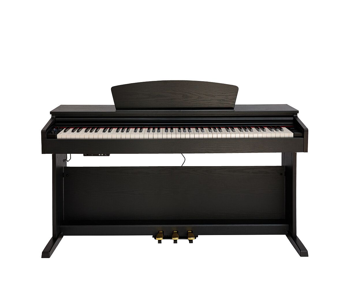 ROCKDALE Etude 64 Black (RDP-5088) цифровое пианино. Цвет: черный. 88 взвешенных полноразмерных клавиш с молоточковой механикой. Полифония 64 голоса. 24 тембра. 55 демо мелодий. Запись двух треков. Функции: транспонирования, разделения и наложения звуков, реверберация, хорус. Метроном. LED дисплей. Два выхода на наушники. Стерео аудио вход/выход. MIDI выход. USB порт. USB MP3 проигрыватель. Выдвижная крышка. Держатель для наушников. Тройная педаль и стойка в комплекте.