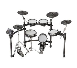Цифровая ударная установка; конфигурация: 1х малый барабан 12", 3х том барабан 10", 1х бас-барабан 10", 1х хай-хэт тарелка 12", 2х крэш тарелка 10"; 1х райд тарелка 14", стойка малого барабана, стойка хай-хэта, педаль бас-барабана, модуль DM-8.