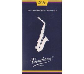 SR2125 Трости для саксофона Альт Традиционные №2,5 (10шт) Vandoren Эти трости производят чрезвычайно чистое звучание благодаря очень тонкому кончику (максимально вибрирующая часть трости) сбалансированному жестким позвоночником (осью симметрии). Традиционные трости имеют самый тонкий кончик...