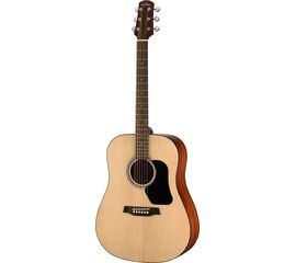 Тип корпуса: дредноут Верхняя дека: массив ели Нижняя дека и обечайка: махагони Гриф / накладка грифа: армированный стекловолокном, анкерный стержень с двусторонним креплением, палисандр / палисандр Бридж: палисандр Защитная накладка: черная Колки: хром литой под давлением Струны:...