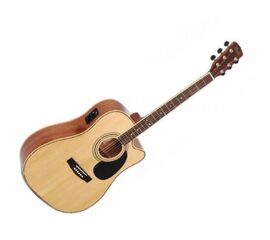 Форма корпуса: дредноут. Мензура: 643мм. 20 ладов. Верхняя дека: ель. Задняя дека и обечайка: красное дерево. Гриф: красное дерево. Накладка грифа и бридж: палисандр. Крепление грифа: ласточкин хвост. Колковая механика: литая. Ширина грифа у верхнего порожка: 43мм. Струны: с покрытием....