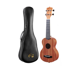 Укулеле размера сопрано, верхняя дека, нижняя дека и обечайка из сапеле; гриф из древесины Окуме, бридж и накладка на гриф из палисандра, колки Rubber Die-Cast, порожек и седло Nubone, струны Enya Ukulele Strings, матовая отделка корпуса, в комплекте чехол Enya Bag.
