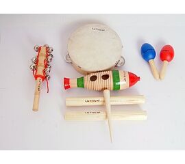 FLT-LT5A Набор перкуссии 5 предмета в чехле (бубен, маракасы-яйцо, маракасы на ручке, деревянный гуиро, казу). Fleet