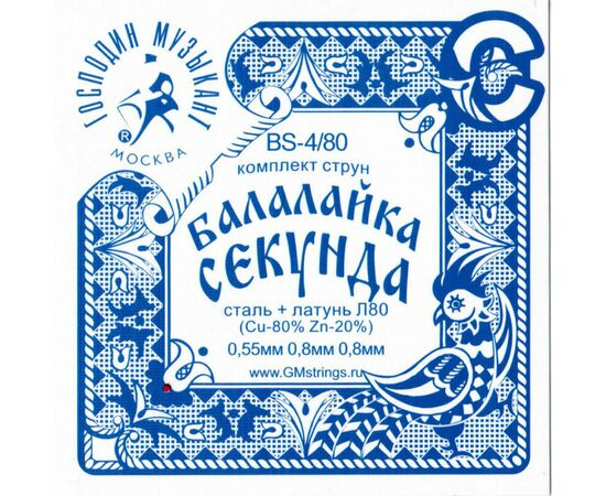 BS4/80 Комплект струн для балалайки-секунда (сталь+Л-80), Господин Музыкант