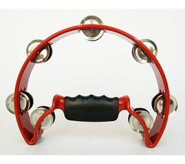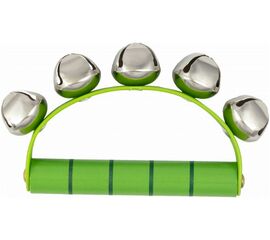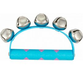 Прорезиненная эргономичная рукоятка. Форма: месяц. Цвета: красный, желтый, синий, зеленый, черный, белый. 14 пар бубенцов в 2 ряда. Материал: пластик/металл. Упаковка: пластиковый пакет.