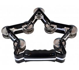 ATB004 Тамбурин, форма "звезда", 14 пар бубенцов. В упаковке. Alice Пластиковая рукоятка. Форма: звезда. Цвета: красный, желтый, синий, зеленый, черный, белый. 14 пар бубенцов в 2 ряда. Материал: пластик/металл. Упаковка: пластиковый пакет.