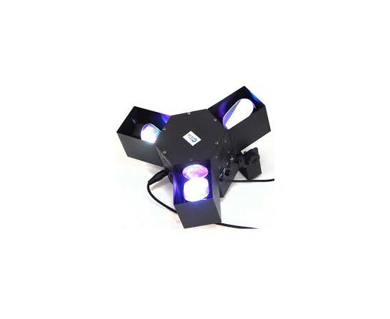 Светодиодный сканирующий прибор с 3-мя зеркалами. 72 светодиода общей мощностью 20 Вт. Угол проекции 38°. Авто-режим, звуковая активация, 8 каналов DMX.