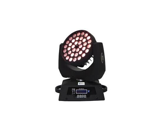 Светодиодный пролноповоротный прожектор 36 светодиодов по 10 Вт 4-в-1 RGBW с эффектом радуги и зумом 15°-60°. 14 каналов DMX. Pan 540° / Tilt 270°. Строб 1-20 всп/сек. Вес 11 кг.