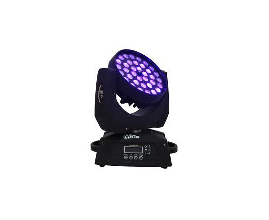 Светодиодный полноповоротный прожектор на 36 светодиодах по 18 Вт 6-в-1 RGBWAP с моторизированным зумом 10°-50°. 18 каналов DMX. Цветовые макро. Вес 9 кг.