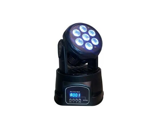 Светодиодный полноповоротный прожектор. 7 светодиодов по 10 Вт 4-в-1 RGBW. 13 каналов DMX. Вес 8 кг.