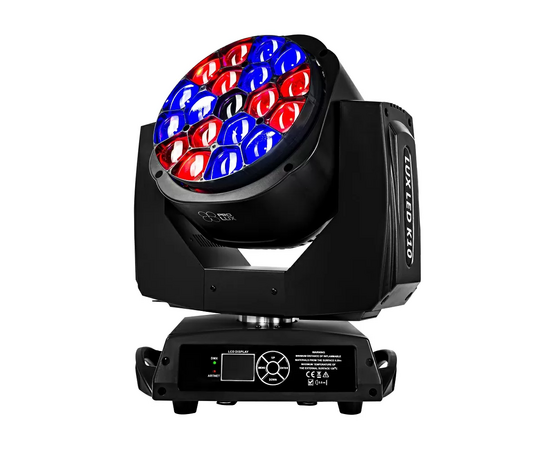 Многофункциональный поворотный прожектор на 19 светодиодах Osram по 15 Вт с точной и насыщенной цветопередачей. Прожектор включает в себя такие функции как Wash, Wash-beam а также эффект калейдоскопа, благодаря двойной вращаемой линзе. Широкий диапазон регулировки угла раскрытия, пиксельные шейпинг-эффекты и пикселный мэппинг дают безграничные возможности для создания светового шоу.