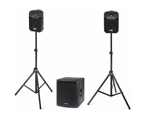 SAMSON AURO D1228 - звукоусилительный комплект в составе двух активных акустических систем SAMSON Auro D208, активного субвуфера SAMSON Auro D1200, пары стоек SAMSON LS40, четырех XLR-кабелей.
