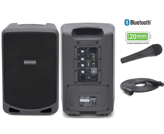 Аудиосистема Samson Expedition XP106 с возможностью перезарядки снабжена уникальным функционалом, включая соединение по Bluetooth и встроенный 4 канальный микшер. В комплекте идет проводной ручной динамический микрофон, который отлично подойдет, как для импровизированных выступлений, так и для профессионально подготовленных презентаций в любых условиях. Такая универсальность, совмещенная с кристально чистым аудио звуком, делает XP106 идеальным решением, как для аудиторий, конференций, туровых групп, вечеринок, так и для использования вне помещения.
