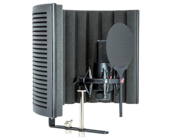 Комплект для студии звукозаписи, состоящий из студийного микрофона X1 S, акустического экрана RF-X, микрофонного подвеса "паук", металлического поп-фильтра и микрофонного кабеля.