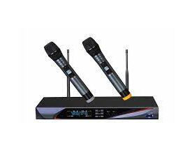 Микрофонная радиосистема UHF. Фазовая автоподстройка частоты. Частотный диапазон 600-740 МГц. 200 каналов. Стабильность частоты ±0.005%. Динамический диапазон 100 дБ. Аудио диапазон 80 Гц-18 кГц (±3дБ). Отношение сигнал/шум >105 дБ. Уровень нелинейных искажений ≤0.5%. Рабочая дистанция приема 80 метров прямой видимости. 2 ручных микрофона.