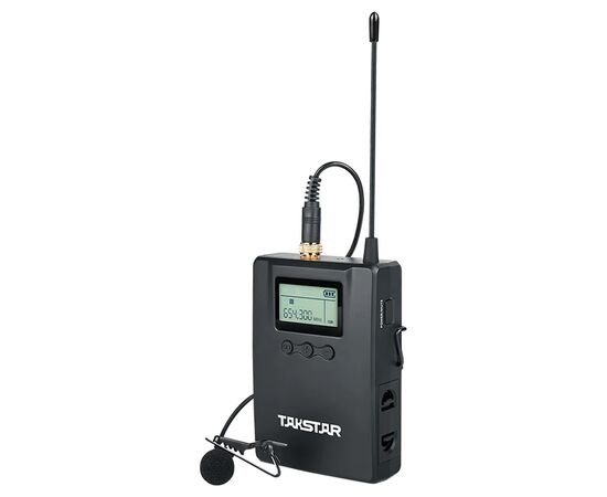 Беспроводня петличная радиосистема; диапазон радиочаст: 470 - 960 МГц; диаграмма направленности: кардиоида; частотный диапазон: 20 - 18000 Гц; рабочий диапазон: до 100 м.